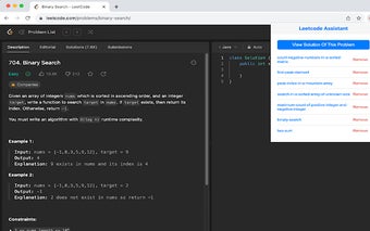 Leetcode Assistant est une extension gratuite pour Chrome qui facilite la résolution des problèmes sur la plateforme Leetcode. Cet outil permet aux utilisateurs de gagner du temps en accédant rapidement à des tutoriels vidéo et à des solutions pour divers problèmes de codage. Grâce à son interface conviviale, les utilisateurs peuvent naviguer facilement entre les différentes ressources, rendant ainsi l'apprentissage plus efficace et agréable.